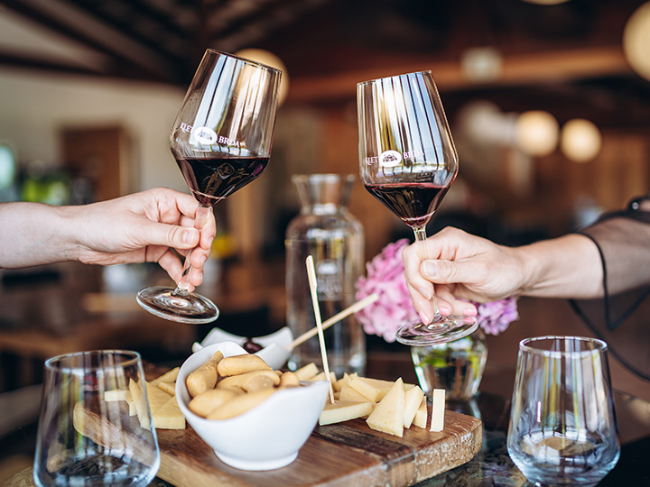 A quindici metri sotto il Castello di Dobrovo, il visitatore è immerso nella storia della viticoltura del Brda, segnata dai cambiamenti dei confini, dalla tenacia delle sue genti, dalla visione enologica di Silverio de Baguer e da una natura unica, sospesa tra Alpi e Mare Adriatico. La degustazione diventa così un viaggio attraverso vini che, con equilibrio, genuinità e raffinatezza, raccontano la pura essenza del territorio. L’esperienza è accompagnata da una selezione di prodotti tipici che varia in base alla stagione e alla disponibilità, come prosciutto e salame locali, formaggio della Valle dell’Isonzo e pane casareccio, per un incontro sincero tra sapori e tradizione.