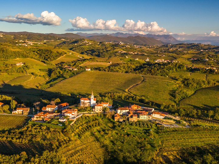 Qui la protagonista è la Rebula (Ribolla), affiancata da varietà internazionali e autoctone che trovano nel suolo di opoka (ponca) la loro firma inconfondibile: vini minerali, freschi ed espressivi, modellati da forti escursioni termiche e da una viticoltura profondamente sostenibile.
