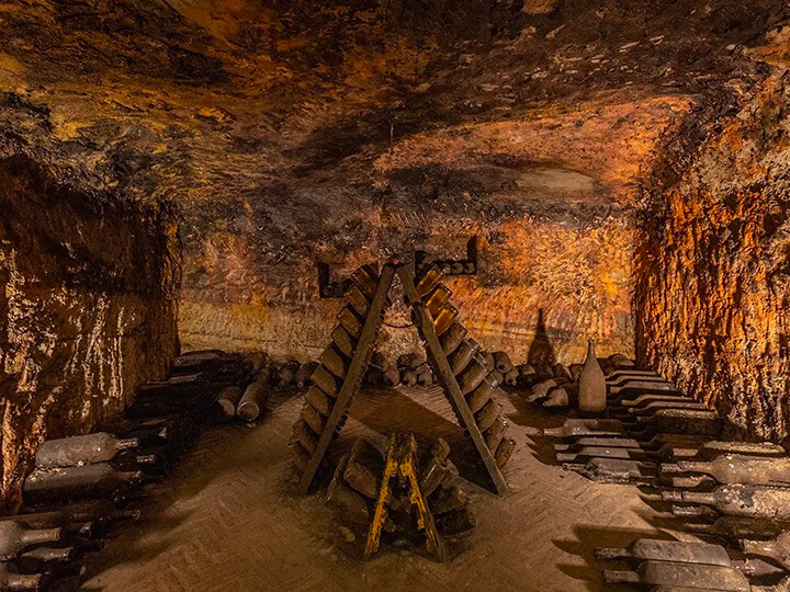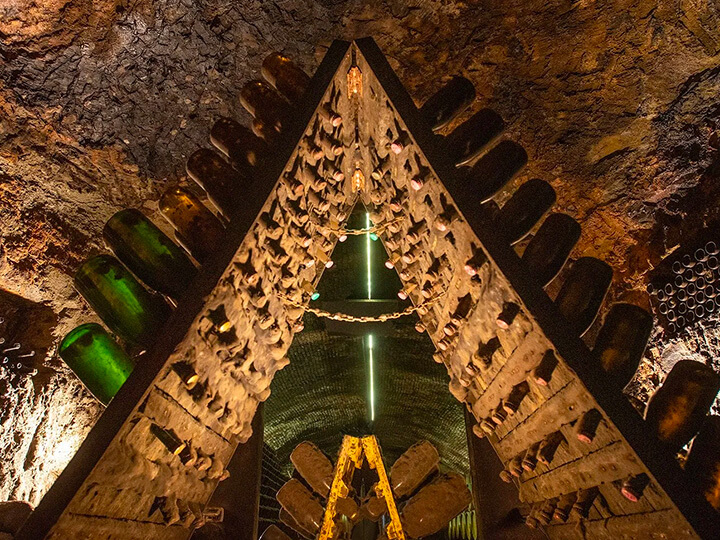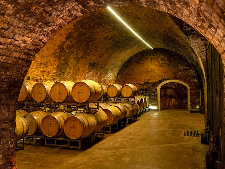 La rete di cunicoli delle Cantine Coppo si sviluppa prevalentemente in lunghezza: una parte della struttura è addossata alla collina, mentre i tunnel principali si inoltrano nel sottosuolo in senso perpendicolare. Le mura e le gallerie, risalenti alla fine dell’Ottocento e agli inizi del Novecento, offrono un’esperienza affascinante, dove storia, cultura e vino si fondono in un equilibrio perfetto.