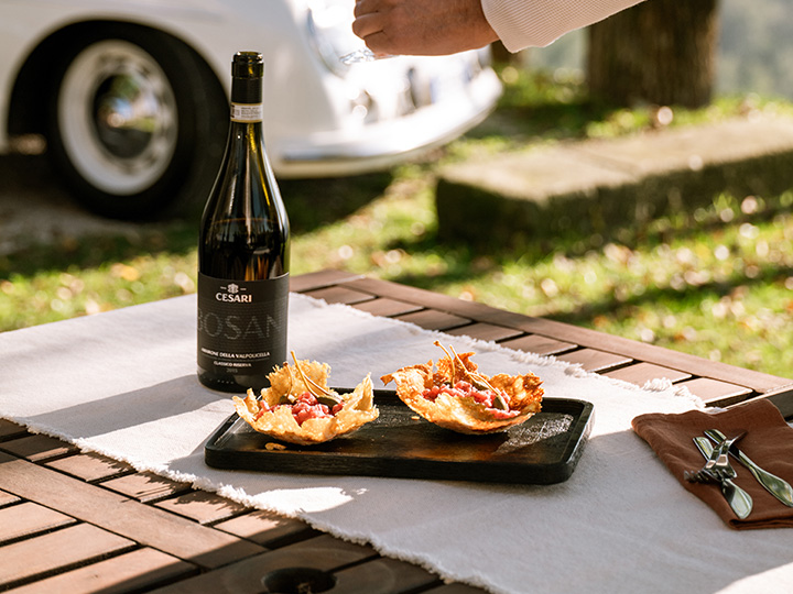 La degustazione guidata della prestigiosa Linea Bosan è accompagnata da una selezione di prodotti del territorio, per esaltare ogni sfumatura e rendere l’esperienza ancora più immersiva. Un racconto profondo, che unisce terroir, tempo e visione contemporanea, svelando l’eccellenza di Cesari nel suo stile più maturo e sofisticato.